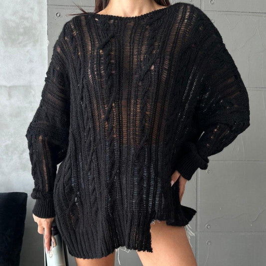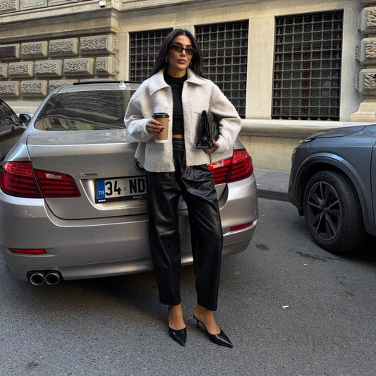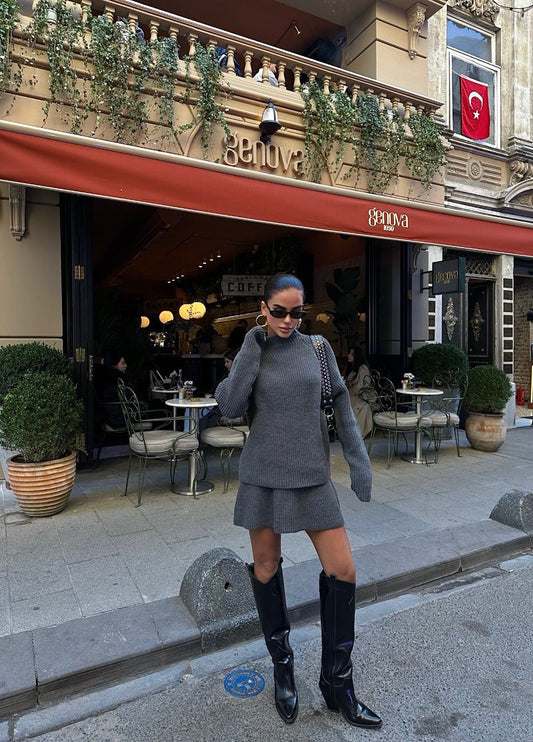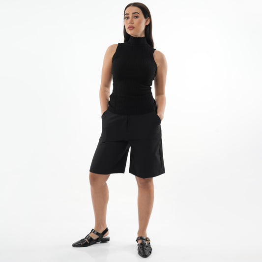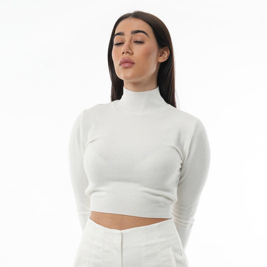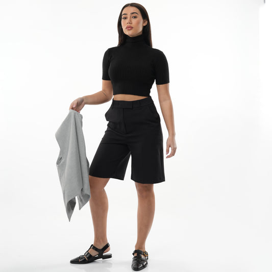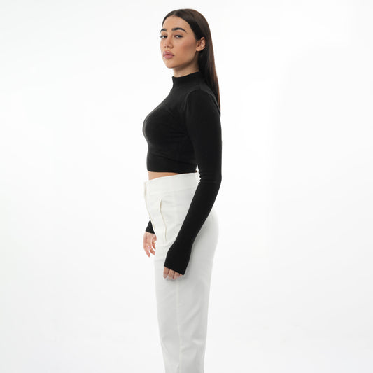 Turtle Neck Long Sleeve Knit Crop Top | Black