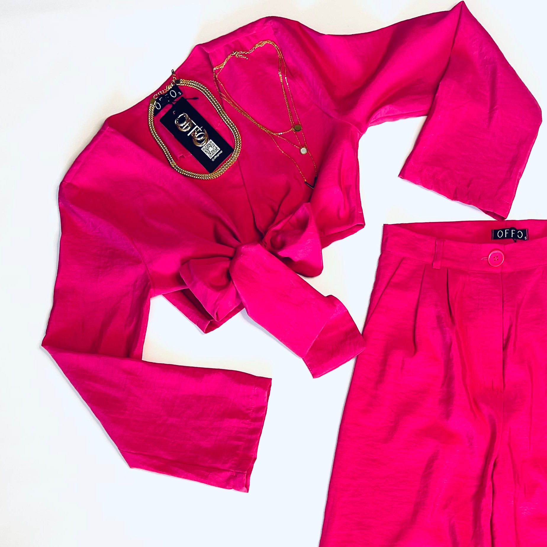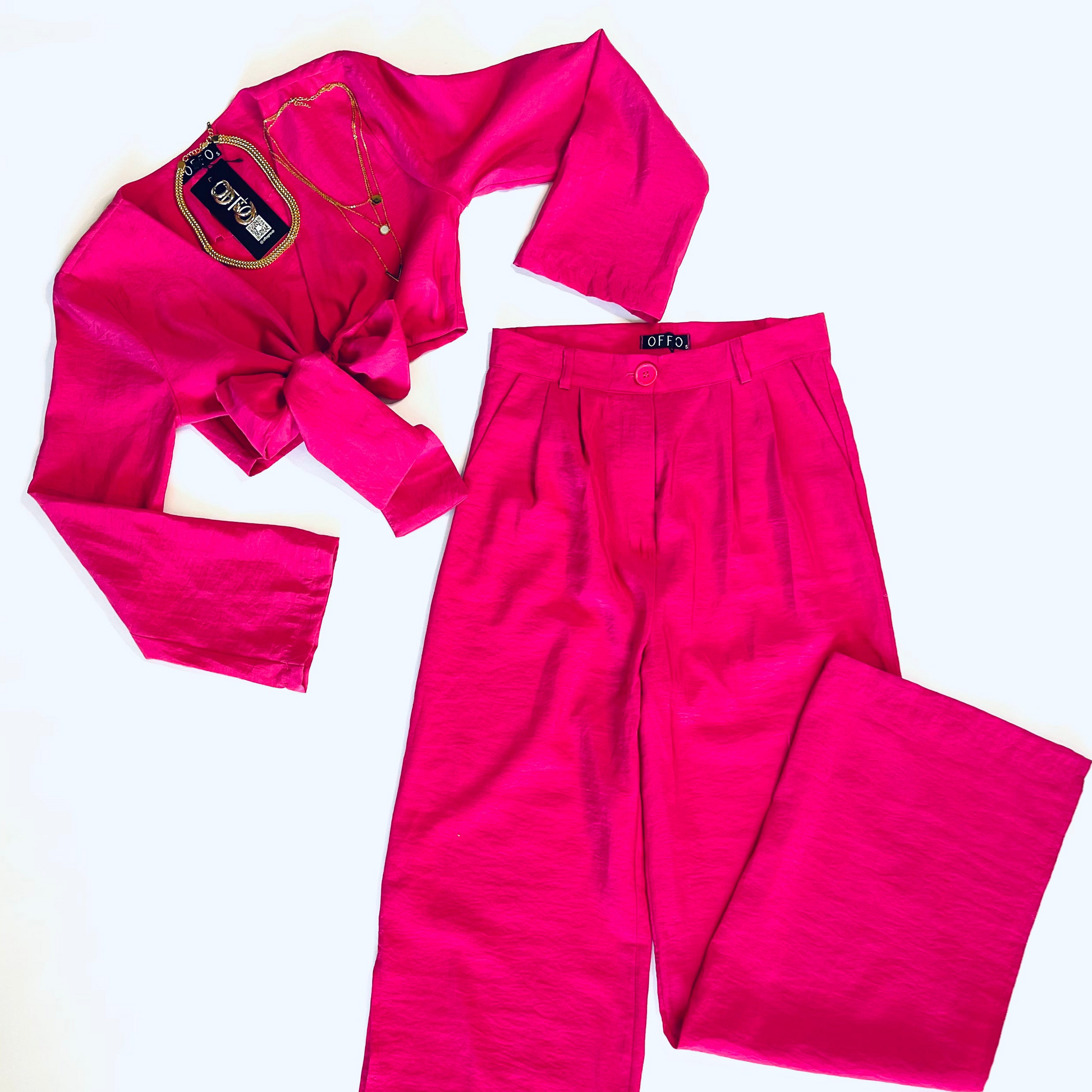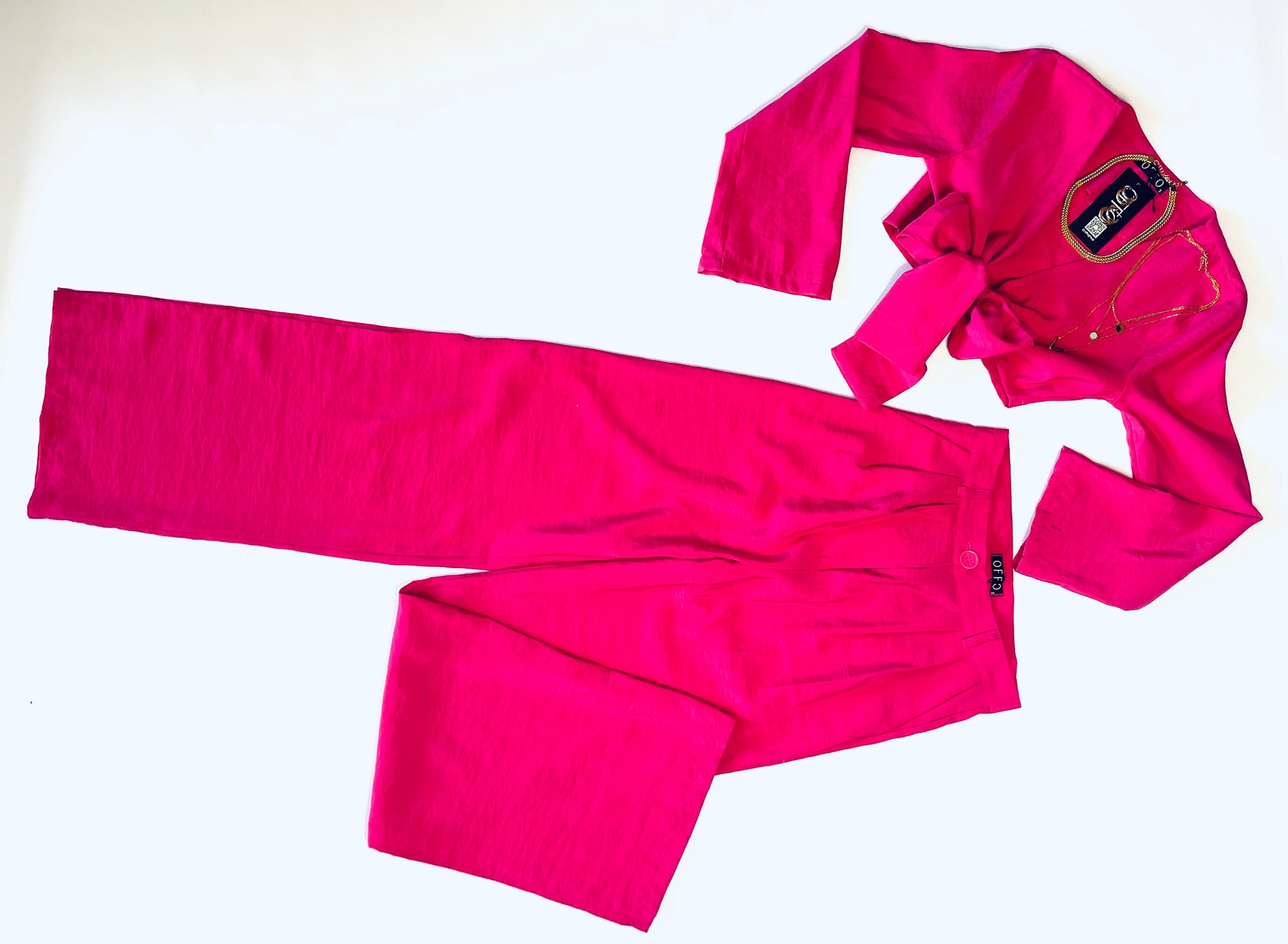 Add some bling to your wardrobe with our elegant Bling Set! This must-have set includes both pants and shirt in a stunning fuchsia color. Made from 100% viscose, the fabric is both great and sophisticated. The pants feature a stylish side slit, making this set a perfect addition to your wardrobe!