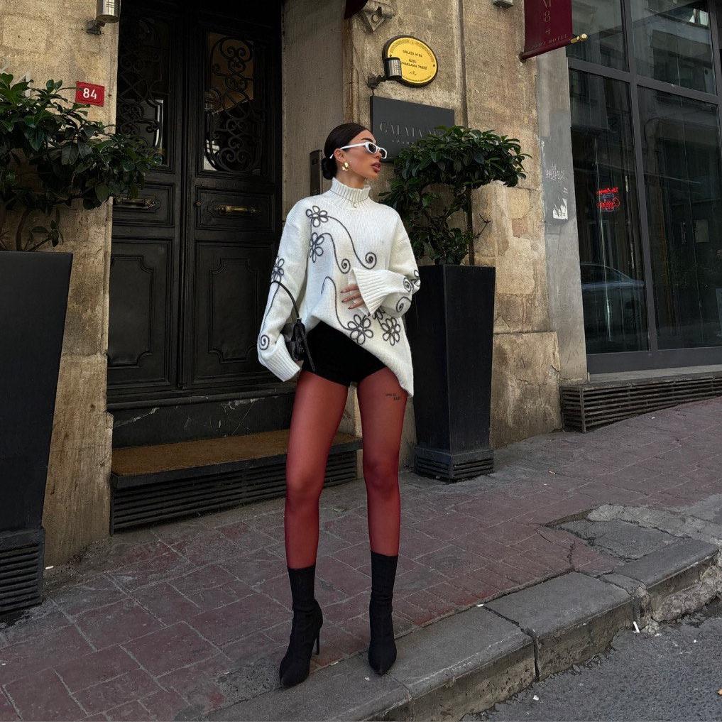 Add a touch of whimsy and comfort to your wardrobe with our grey or white blouse adorned with a black flower pattern. Perfect for chilly days, this blouse is not only fashionable, but cozy too.