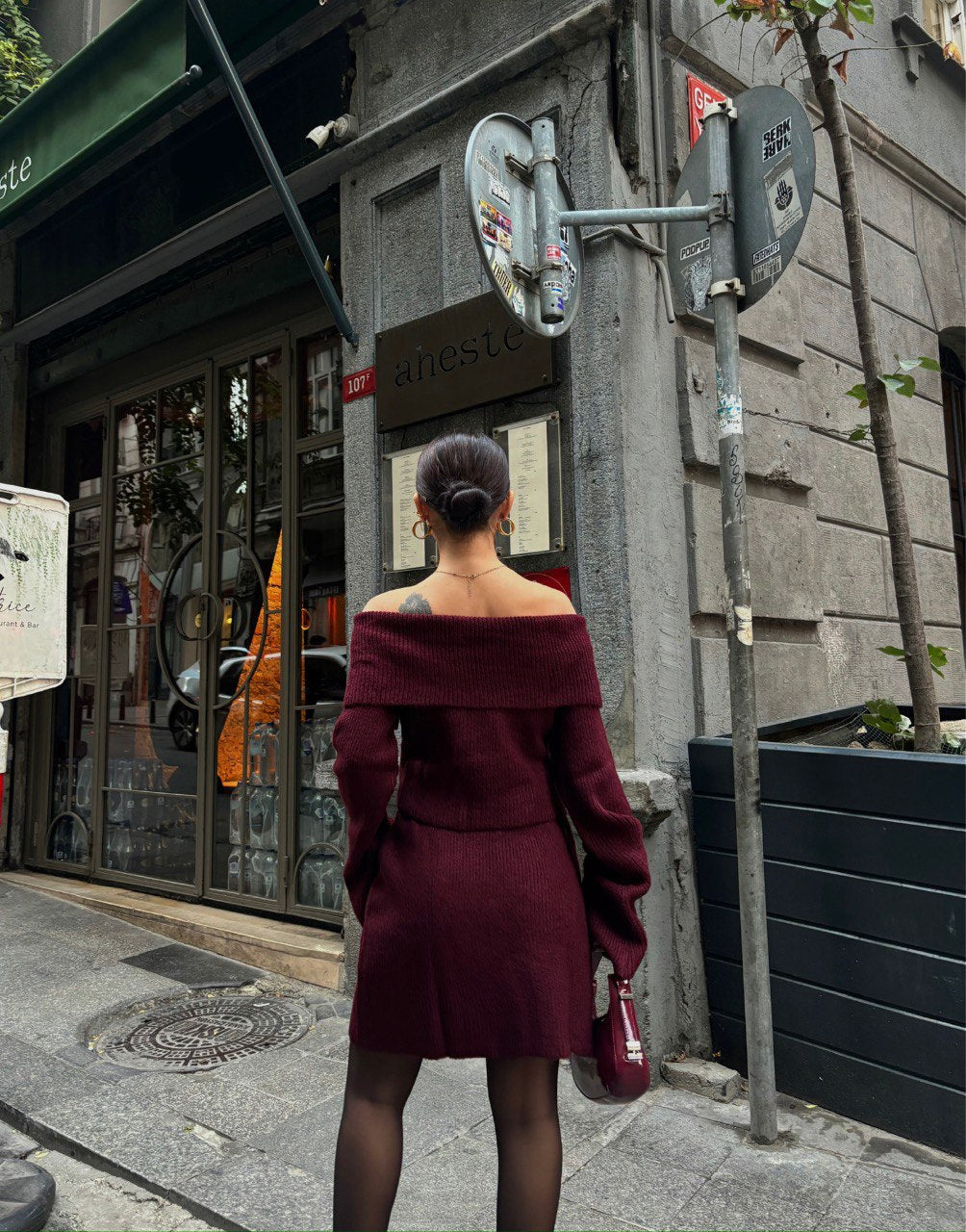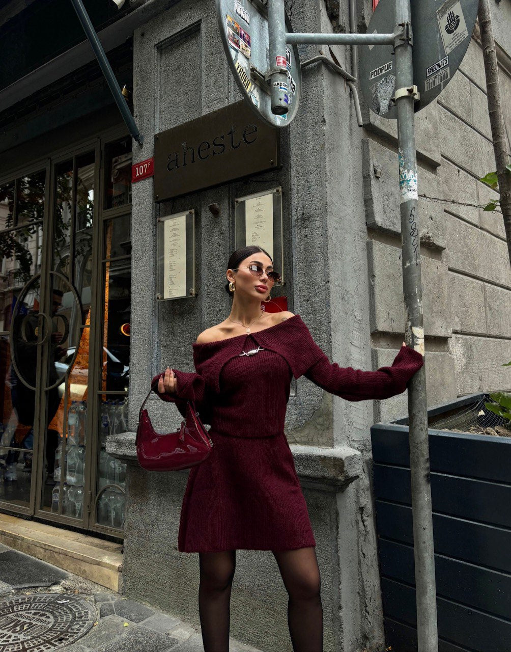 Get ready to make a statement in our Co-Ord Set! This stylish bordeaux set is perfect for any dinner or party, keeping you warm and on-trend. Don't miss out on this must-have addition to your wardrobe.