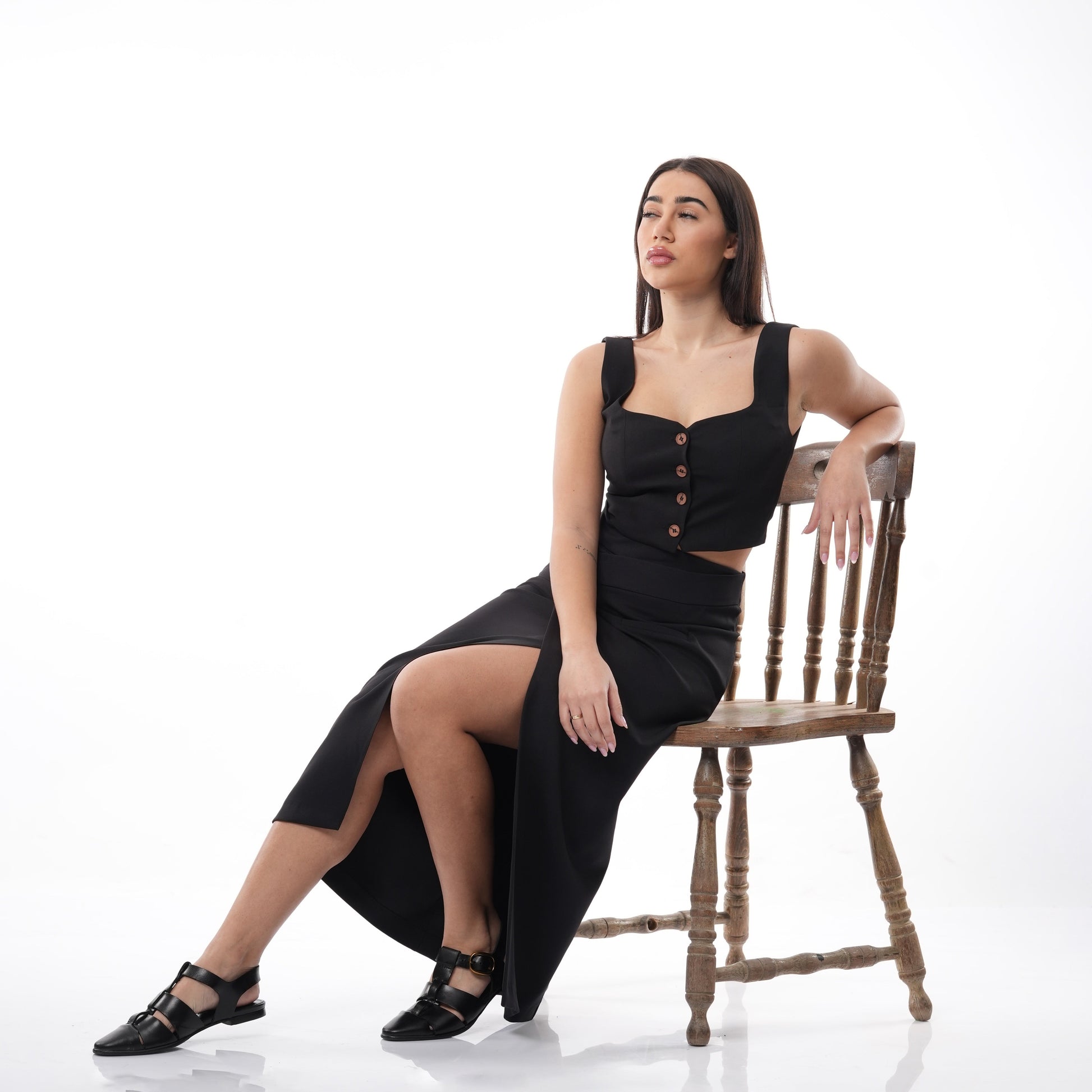 Elevate your style with our Co-Ord Set! This elegant and classic duo features a midi skirt with a stylish slit and a cropped waistcoat with a sweetheart neckline. The perfect combination of minimalistic and chic, all crafted with excellent materials. Make a statement wherever you go!