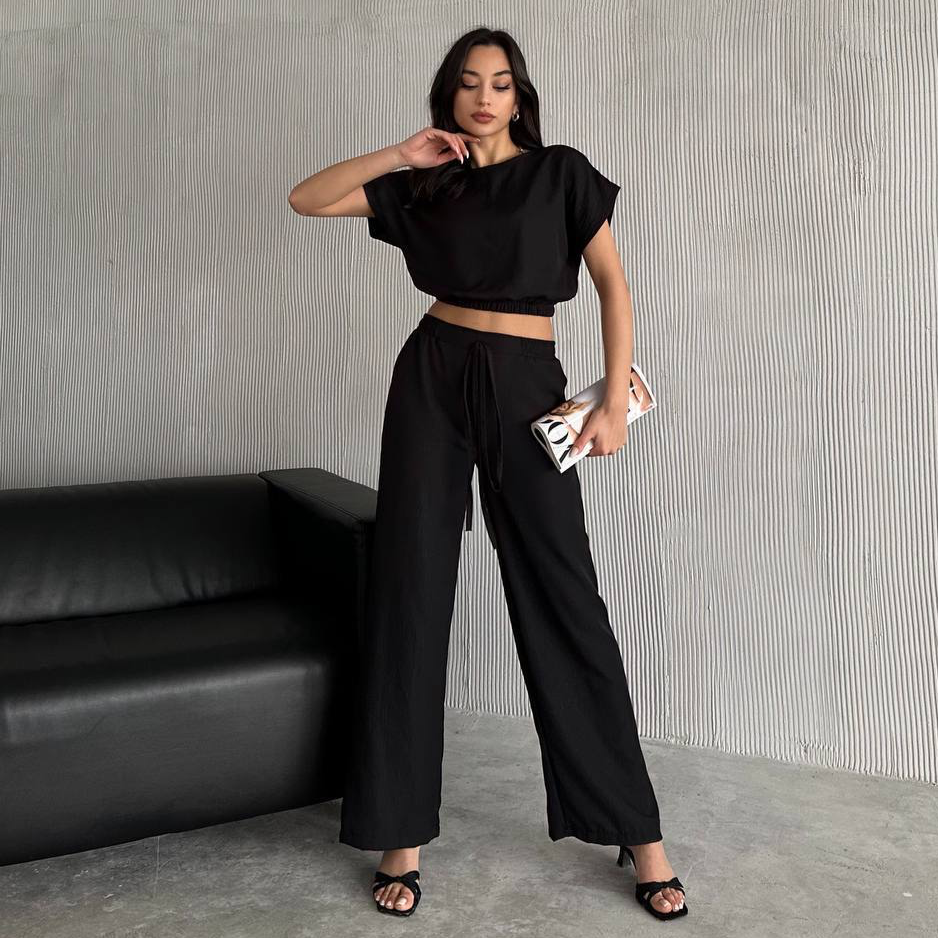 Check out our Flow 2-Piece Set in a beautiful green color! The "flowy" pants and crop top provide both comfort and a playful vibe, perfect for a day out. Stay chic and comfortable all day long!
