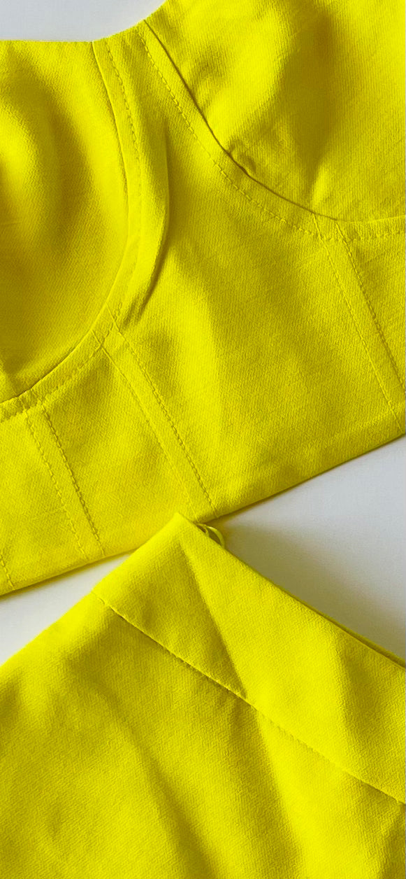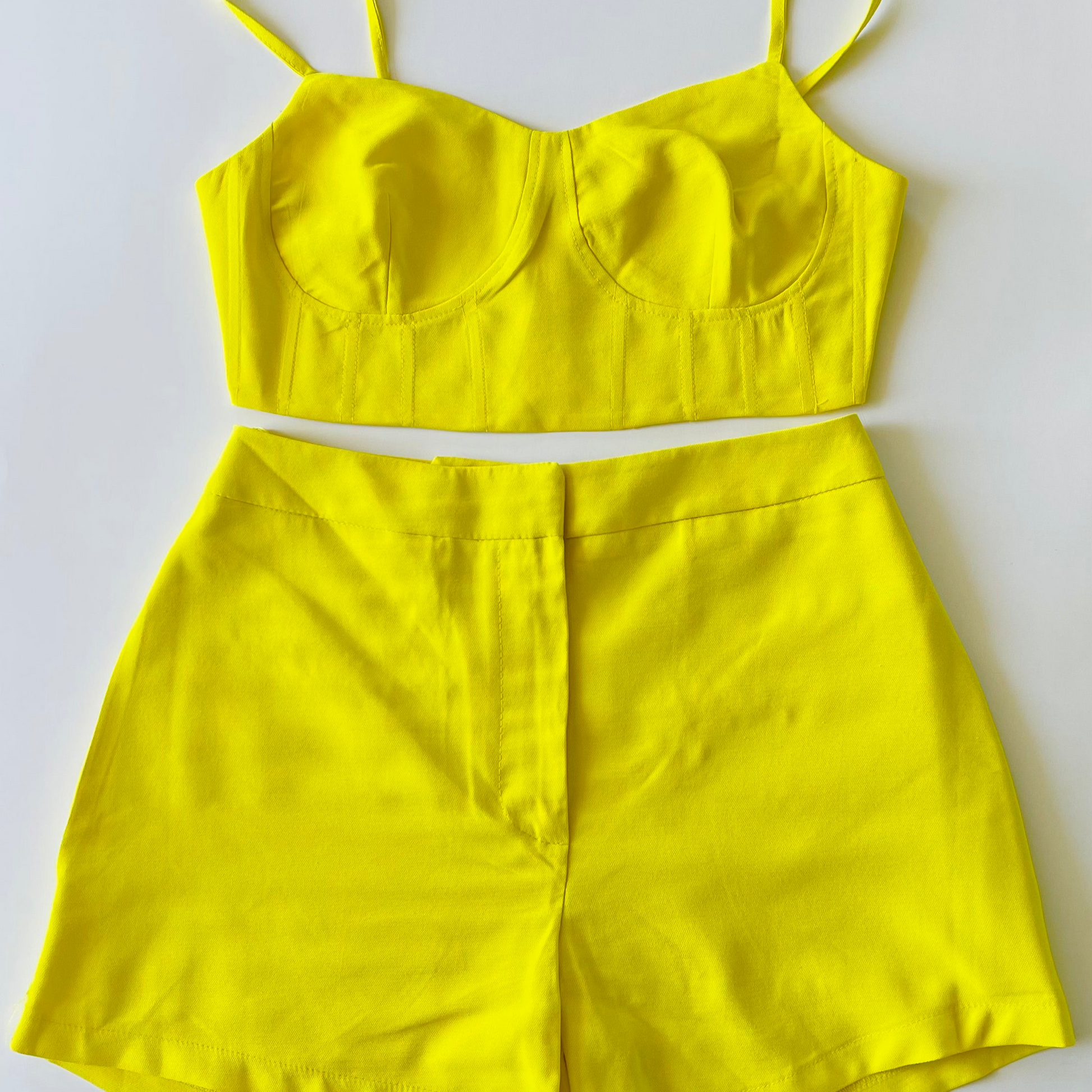 Add a pop of love to your wardrobe with our Heart Set! Made from premium quality fabric, this set includes a heart-shaped crop top and short in two unique colors: yellow and salmon. Perfect for adding a playful touch to any outfit.