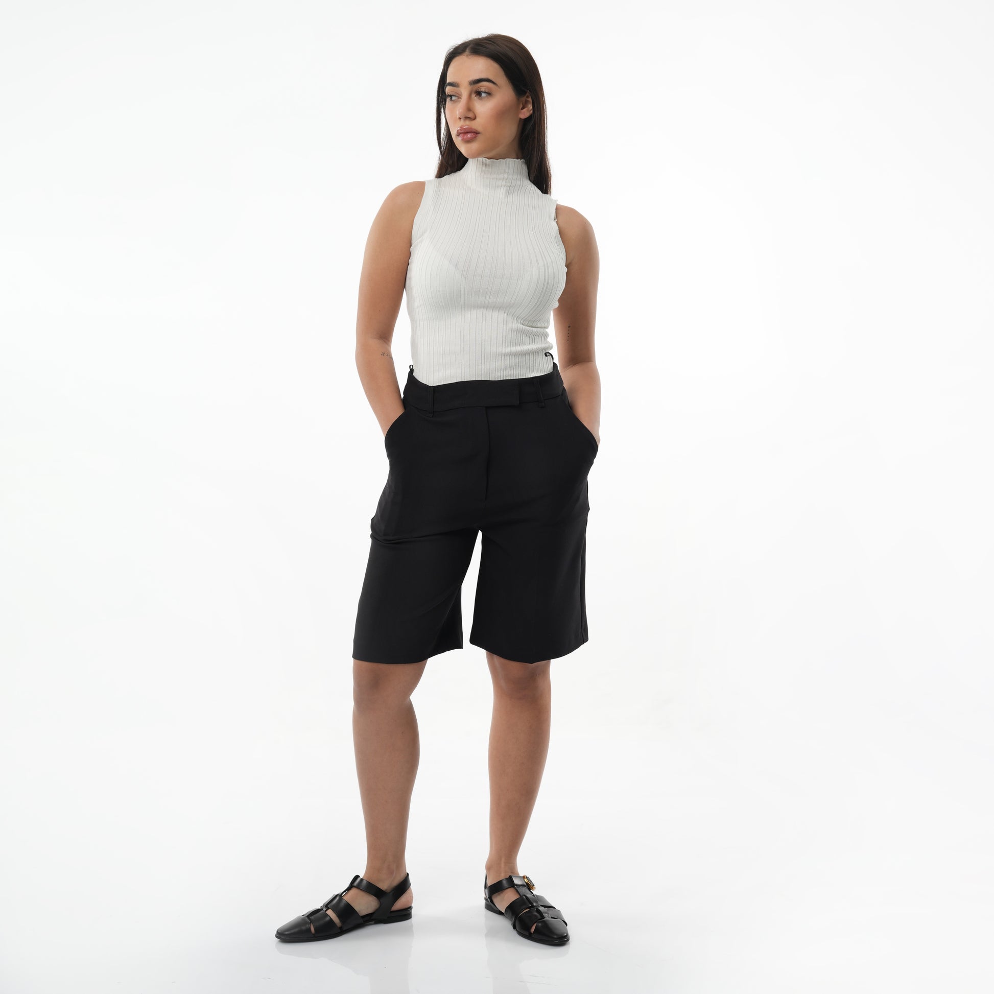 Introducing our Knee Length Short, perfect for the sophisticated business professional. With its elegant and minimalistic design, this Suit Short is ideal for anyone looking to elevate their business attire. Its sleek silhouette and iron mark add a touch of luxury to any up style. Elevate your wardrobe with this exclusive piece.