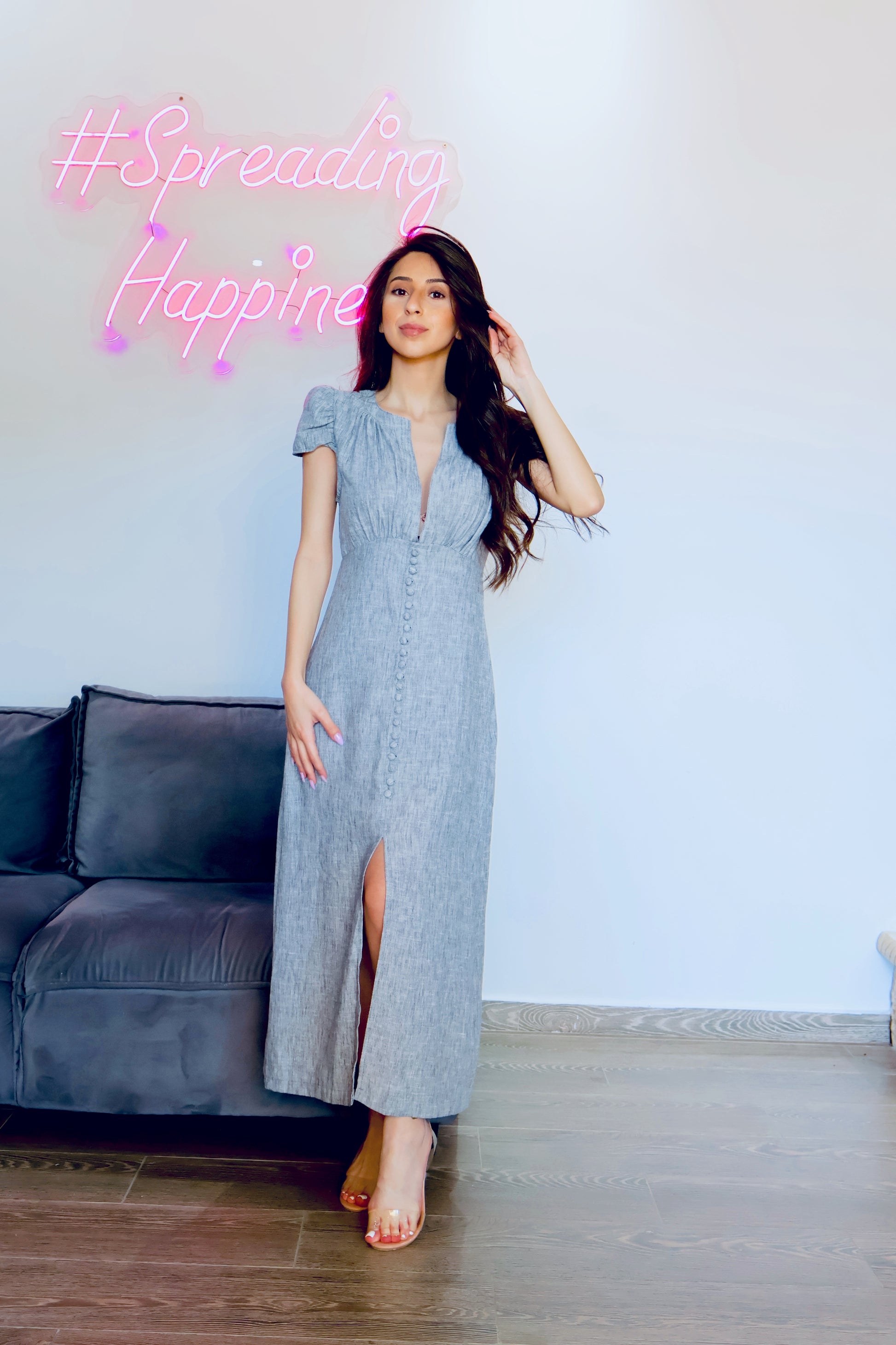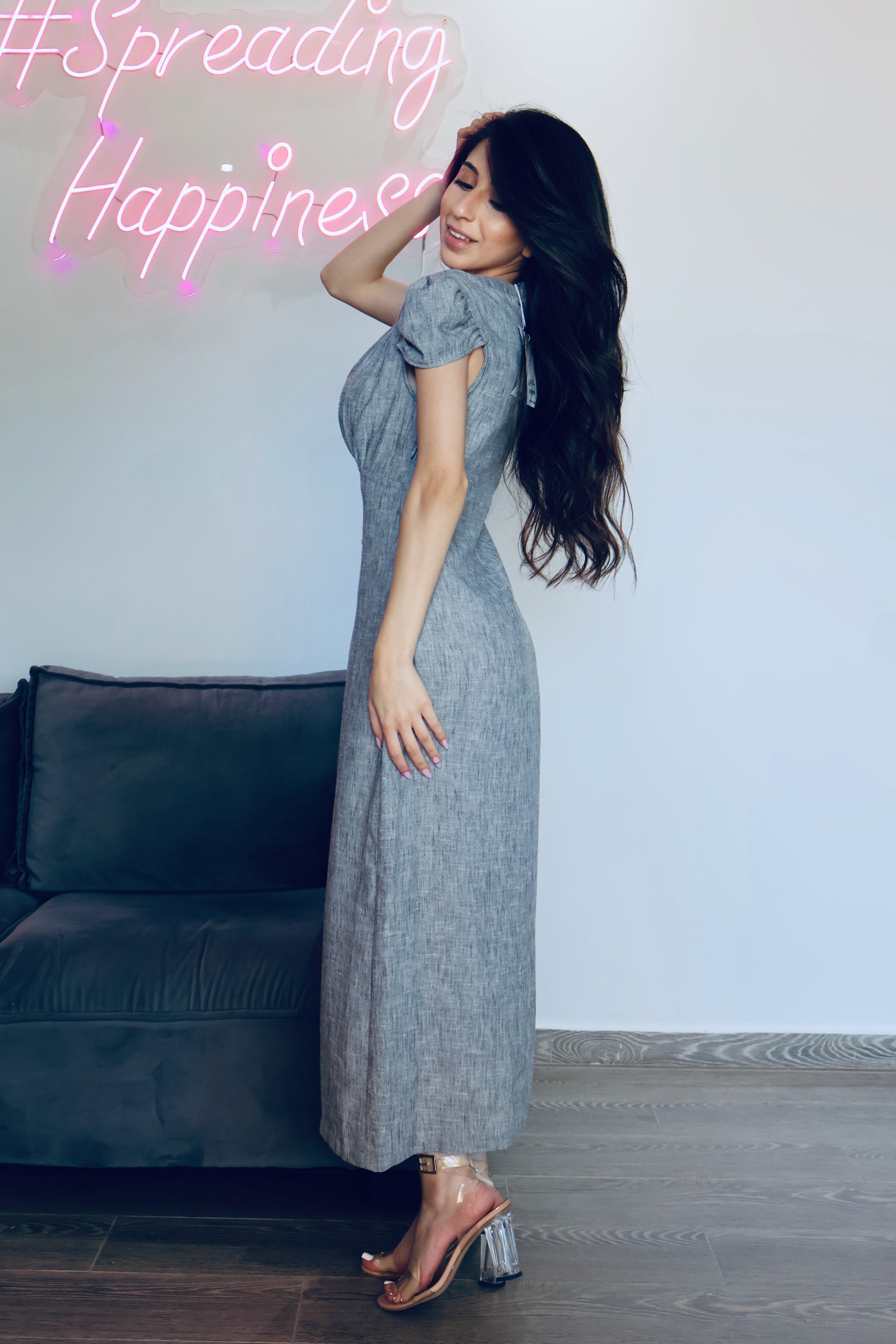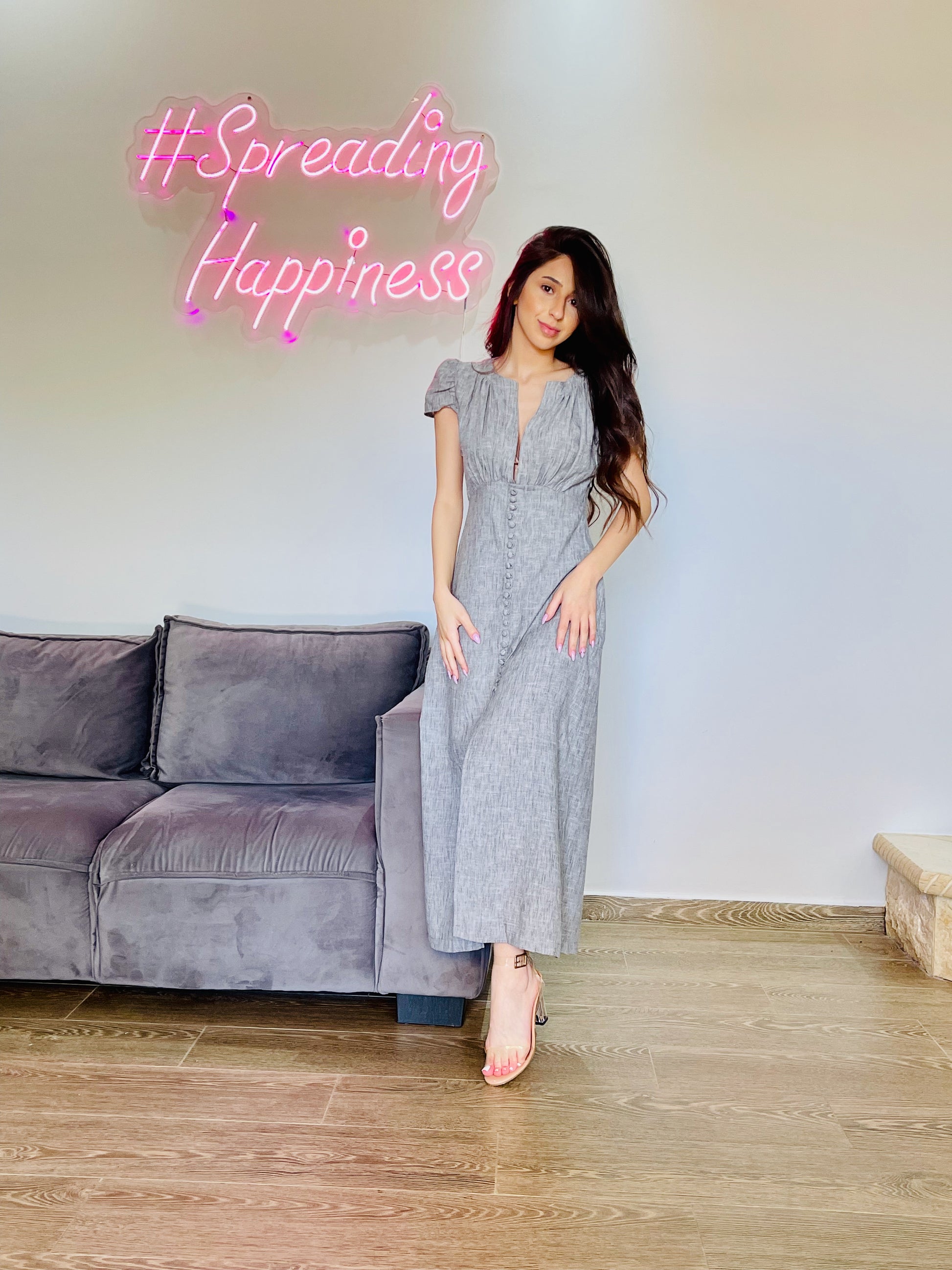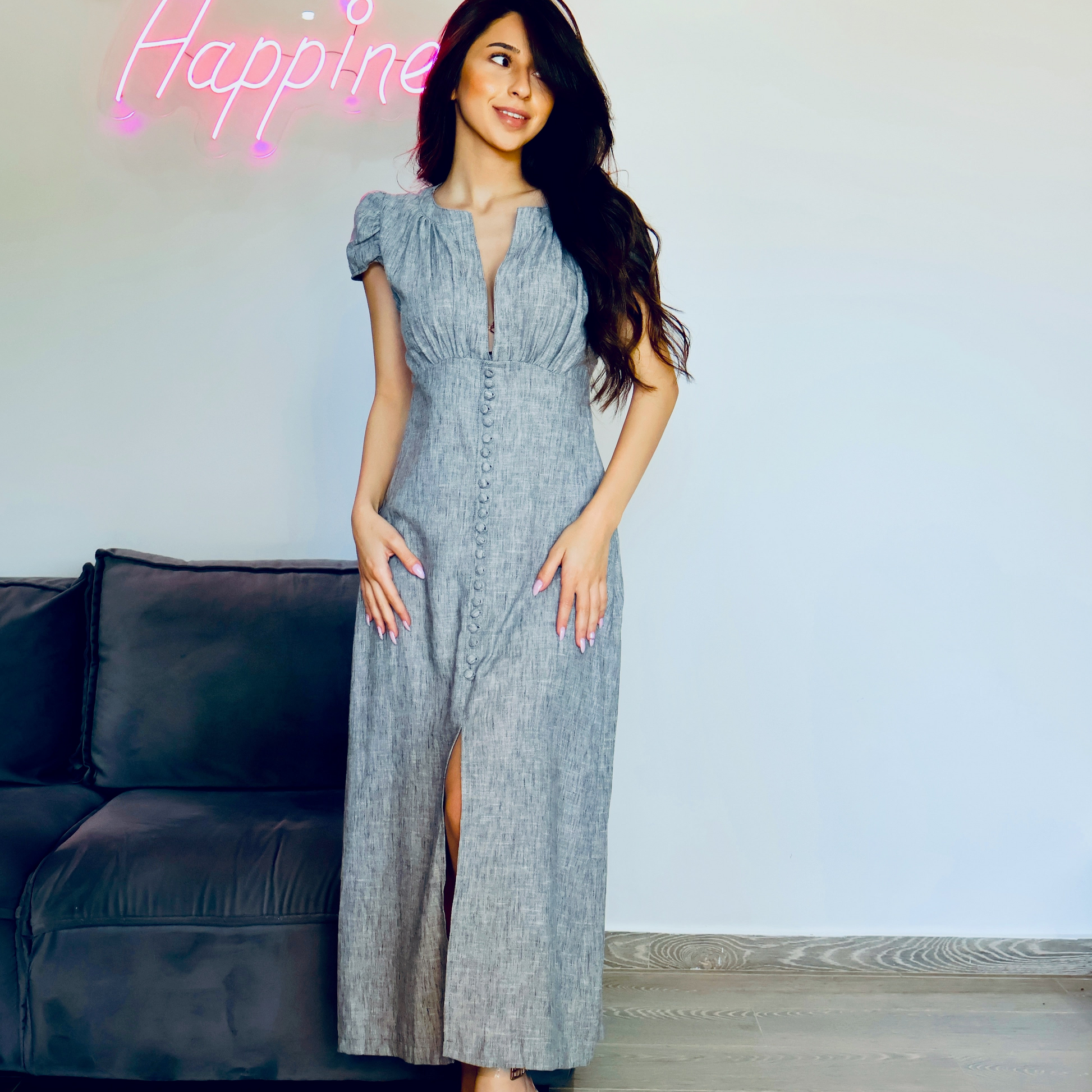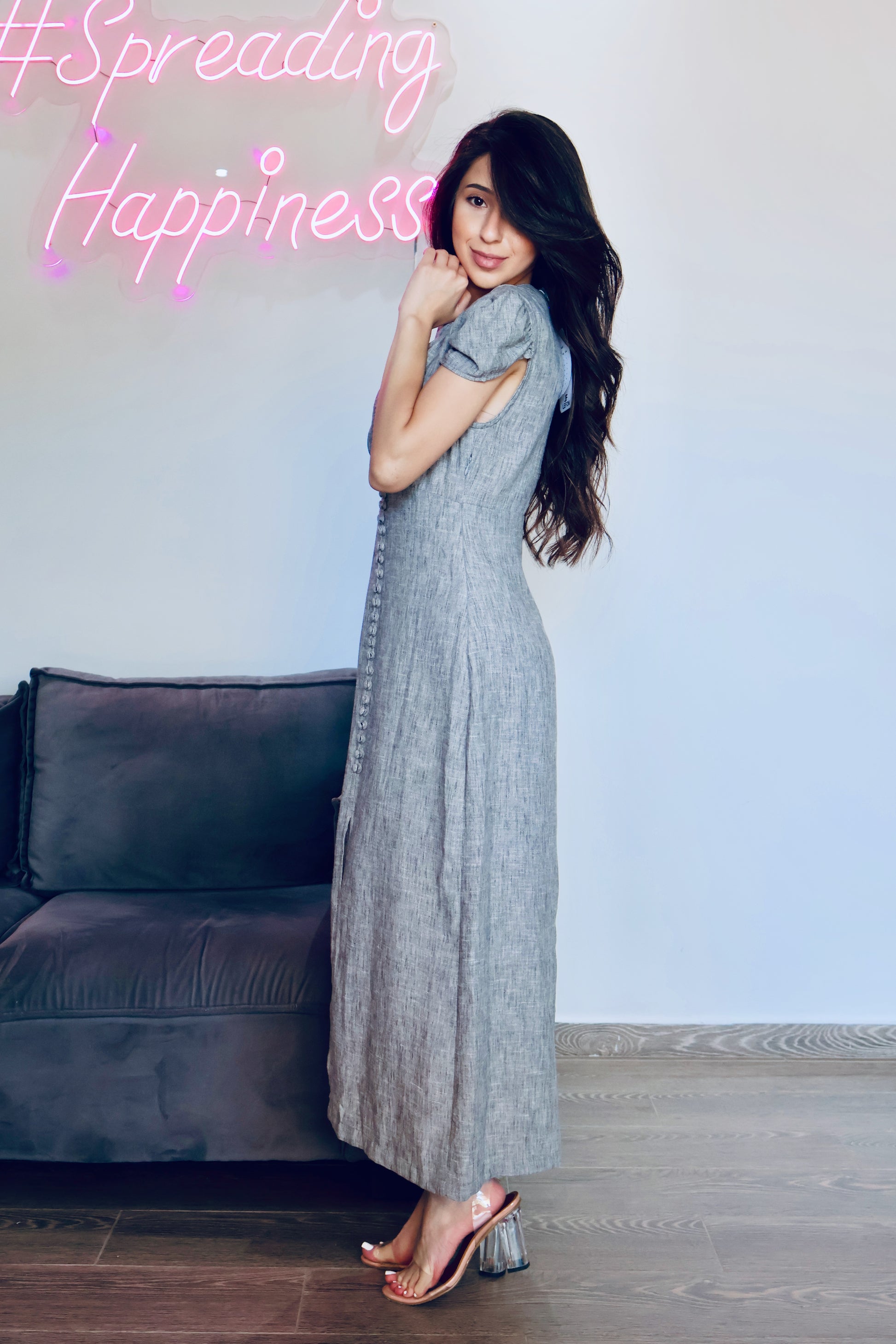 Look effortlessly elegant in this 100% linen midi dress!