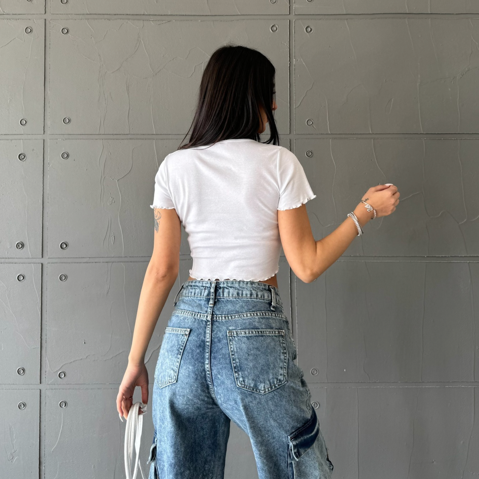 Ruffle Sleeve & V-Nech Crop Top | 2 Colors